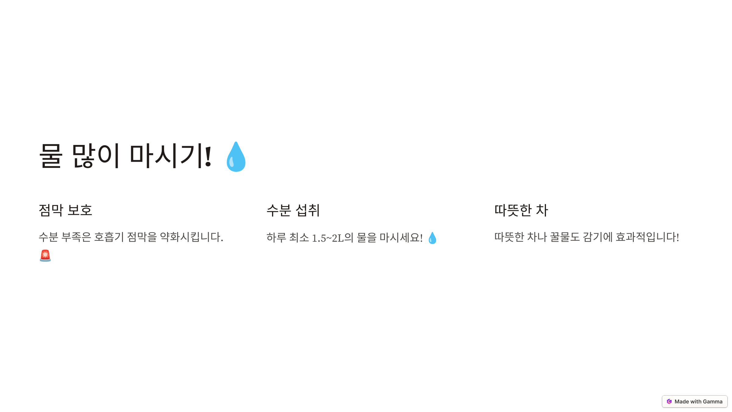 수분이 부족하면 호흡기 점막이 약해지고, 감염 위험도 UP! 🚨