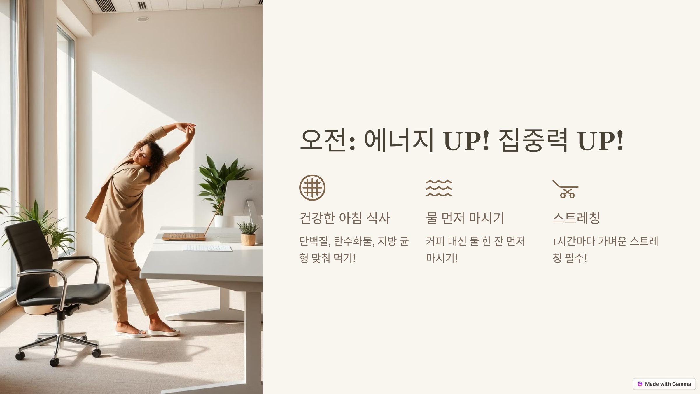 2️⃣ 오전: 에너지 UP! 집중력 높이는 루틴 ⚡