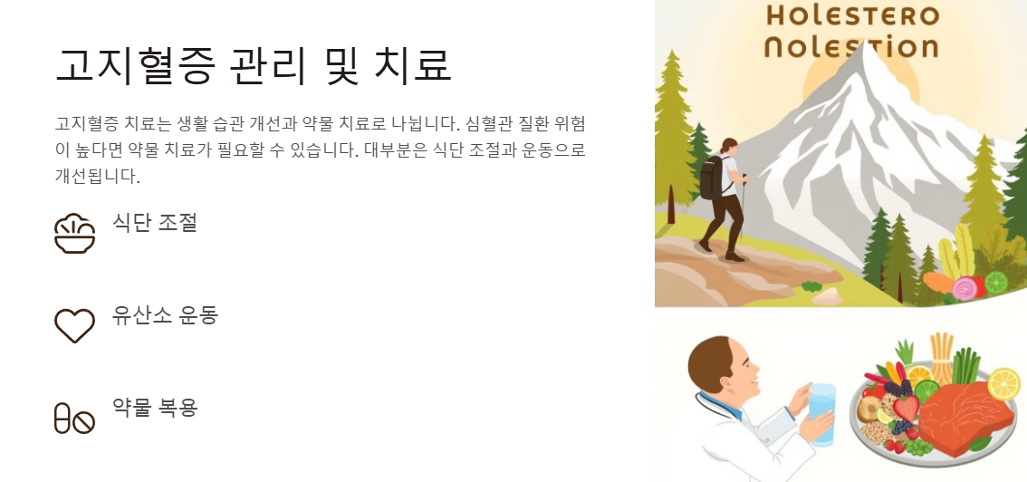 고지혈증의 치료는 생활 습관 개선과 약물 치료로 나뉩니다. 심혈관 질환 위험이 높다면 약물 치료가 필요할 수 있지만, 대부분은 식단 조절과 운동으로 개선할 수 있습니다.