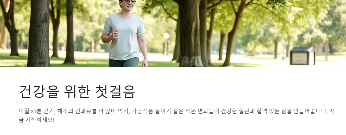 여러분도 오늘부터 작은 실천을 시작해보세요! 매일 30분 걷기, 채소와 견과류를 더 많이 먹기, 가공식품 줄이기 같은 작은 변화들이 모여 건강한 혈관과 활력 있는 삶을 만들어줍니다. 지금 이 순간, 여러분의 건강을 위한 첫걸음을 내디뎌 보세요! 😊