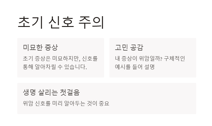 위암은 조기 발견이 생존율을 좌우합니다. 위암 초기 신호와 위암 증상을 미리 알아두고, 정기 검진으로 건강을 지키세요. 위암 신호를 놓치지 않는 것이 건강한 삶의 첫걸음입니다!